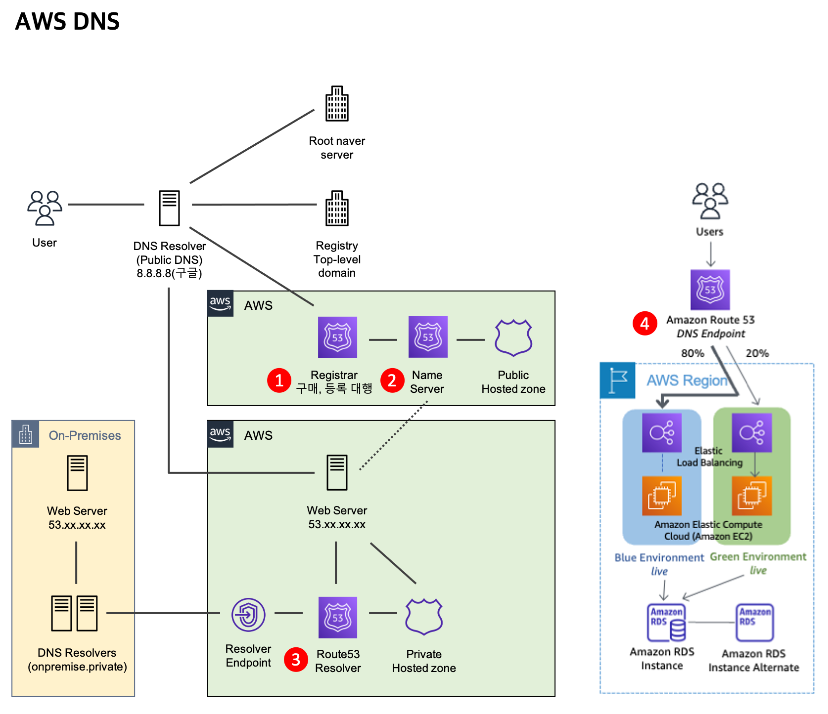 * Hosted Zone : 레코드를 생성하는 영역.