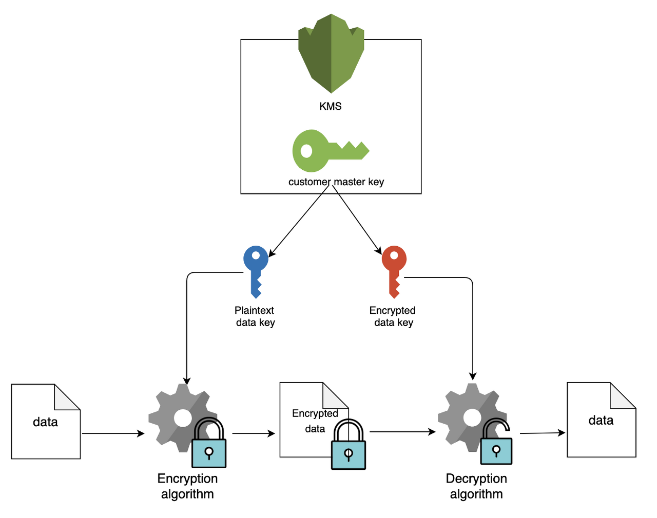 2) Plaintext data key : Data key 중 데이터를 암호화 하는데 사용. 암호화 이후에는 폐기된다.